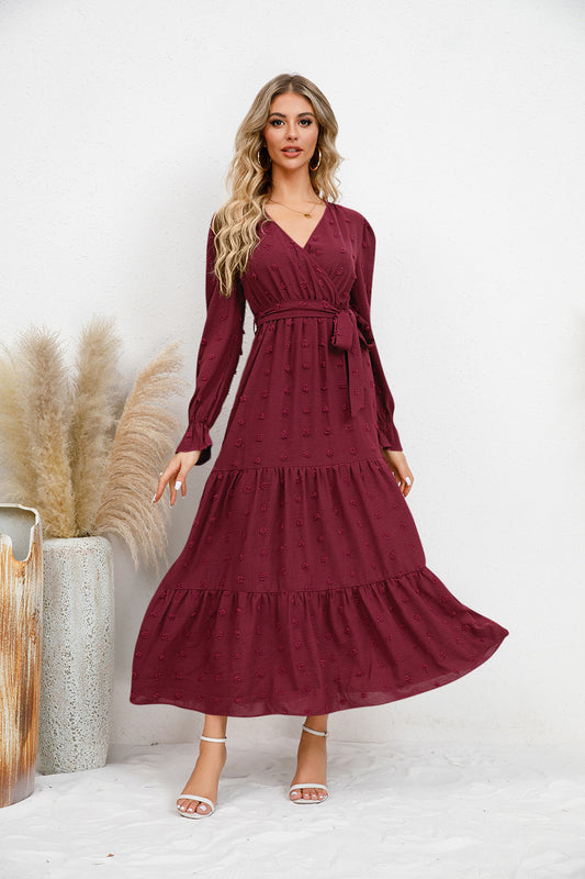 V-Neck Ruffle Sleeve Tiered A-Line Dress
